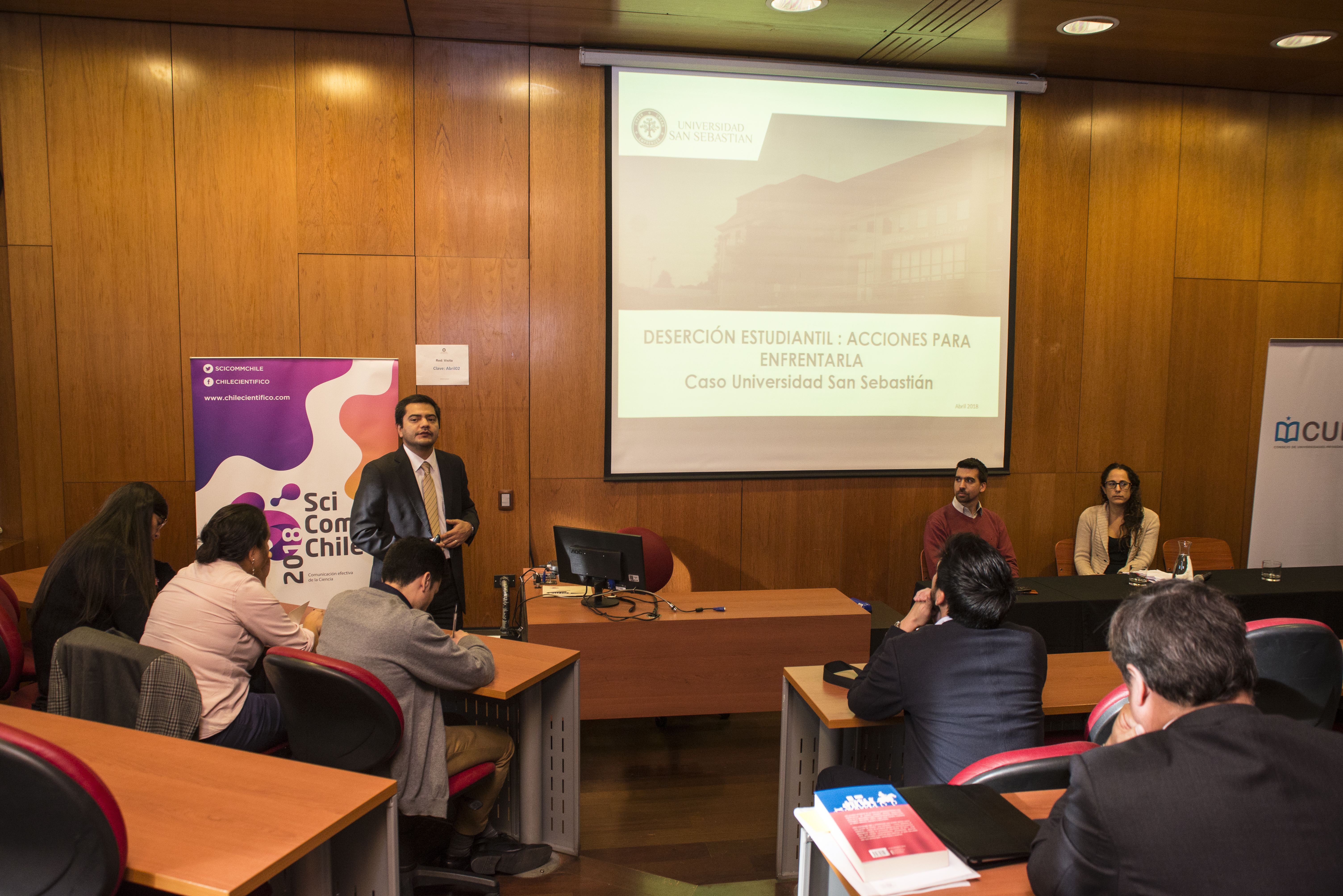 La actividad, que se realizó el pasado 26 de abril, en el campus Bellavista de la Universidad San Sebastián, contó con la exposición de Fabián Riquelme, Director Nacional de Estudios de la Universidad San Sebastián; Luna Elizalde, Analista de Información de Educación Superior (SIES) del Ministerio de Educación; y Sebastián Flores, Chief Data Officer de U-Planner, quienes analizaron desde distintas perspectivas las causas y problemáticas que acarrea la deserción estudiantil.