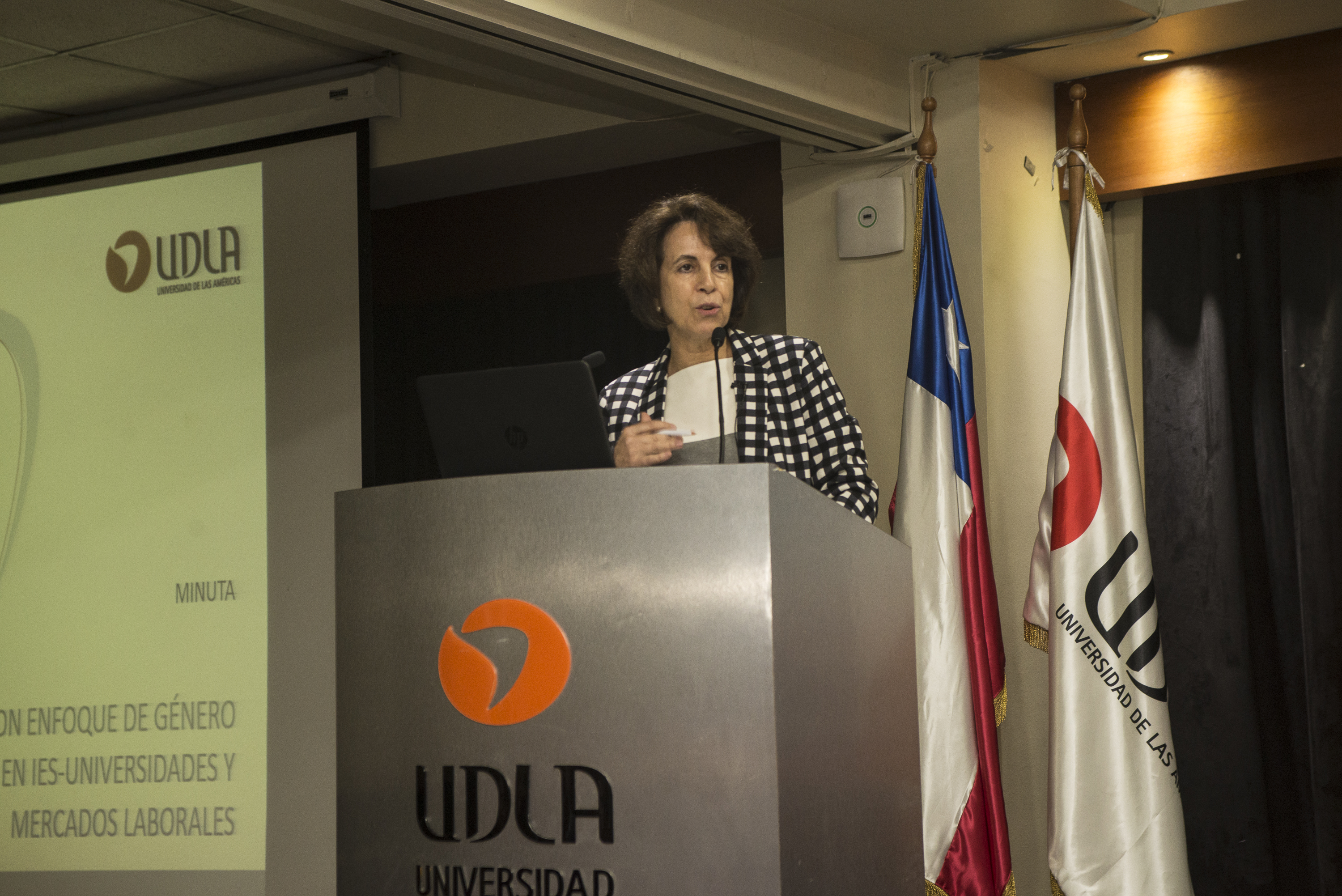 En el caso particular de la Universidad de Las Américas, la Rectora destacó que las mujeres tienen mejores tasas de retención y de titulación oportunas, “en promedio las tasas de retención son un 8% más altas, y en titulación oportuna un 7% para mujeres”.