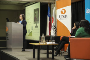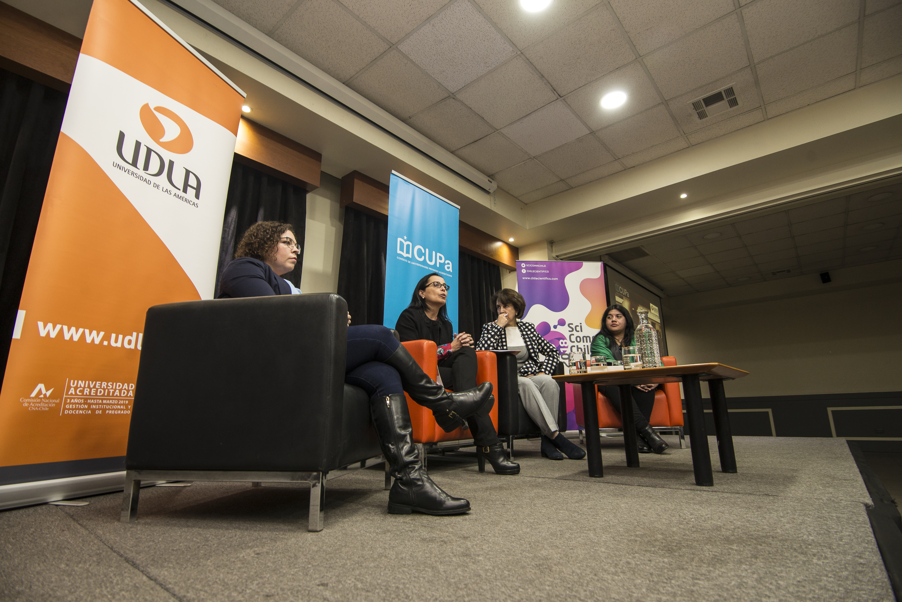 En el conversatorio, que contó con la participación de más de 70 asistentes, expusieron Pilar Romaguera, Rectora de la UDLA; Verónica Retamal, asesora y coordinadora del área universidades y vicepresidenta de la Comisión de Equidad de Género del Ministerio de Educación; Vania Figueroa, de la Universidad de O´Higgins y miembro de la Red de Investigadoras; y Marcela Oñate, analista del Departamento de Estudios y Gestión Estratégica y parte del equipo técnico para el Plan Institucional de Género de CONICYT.