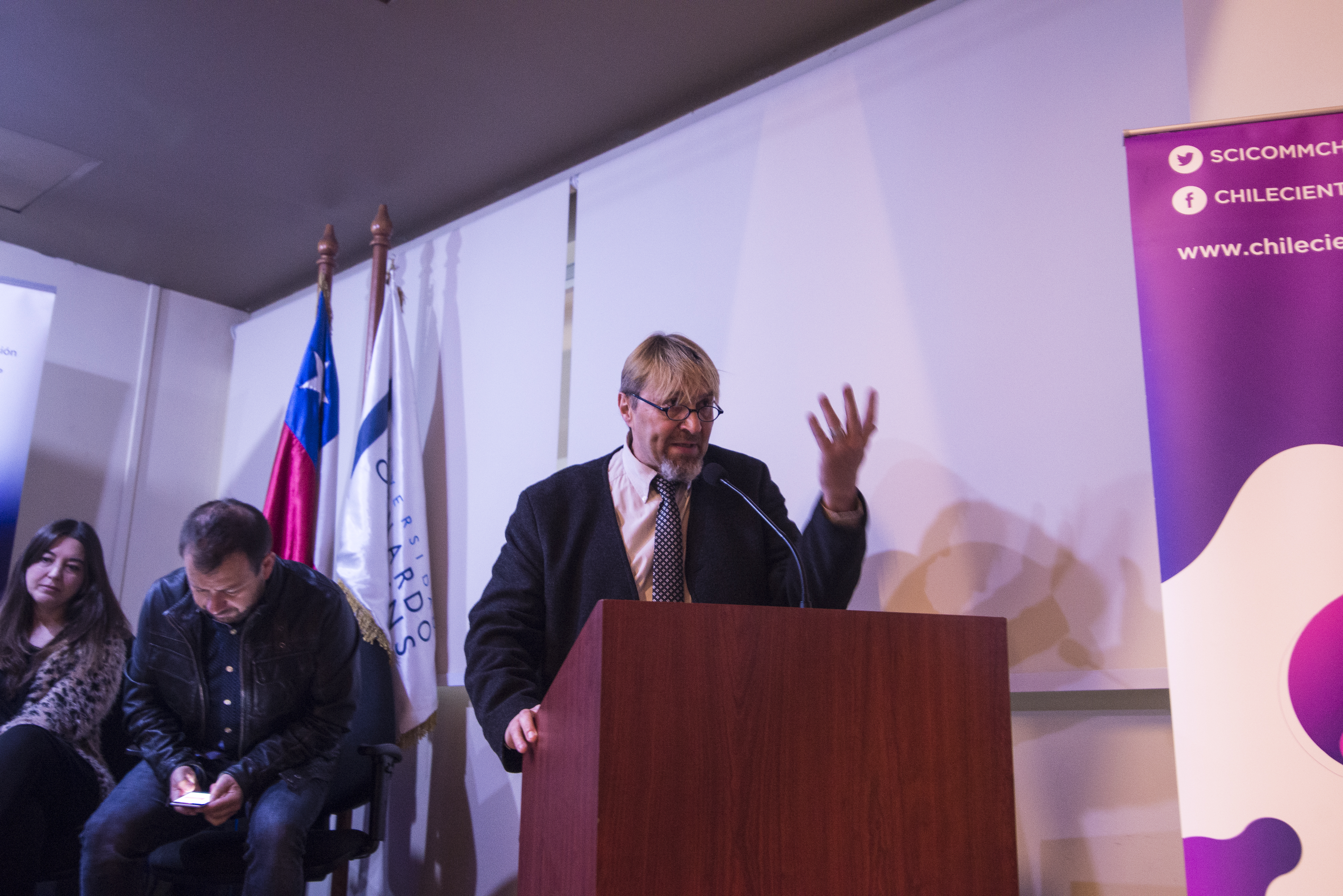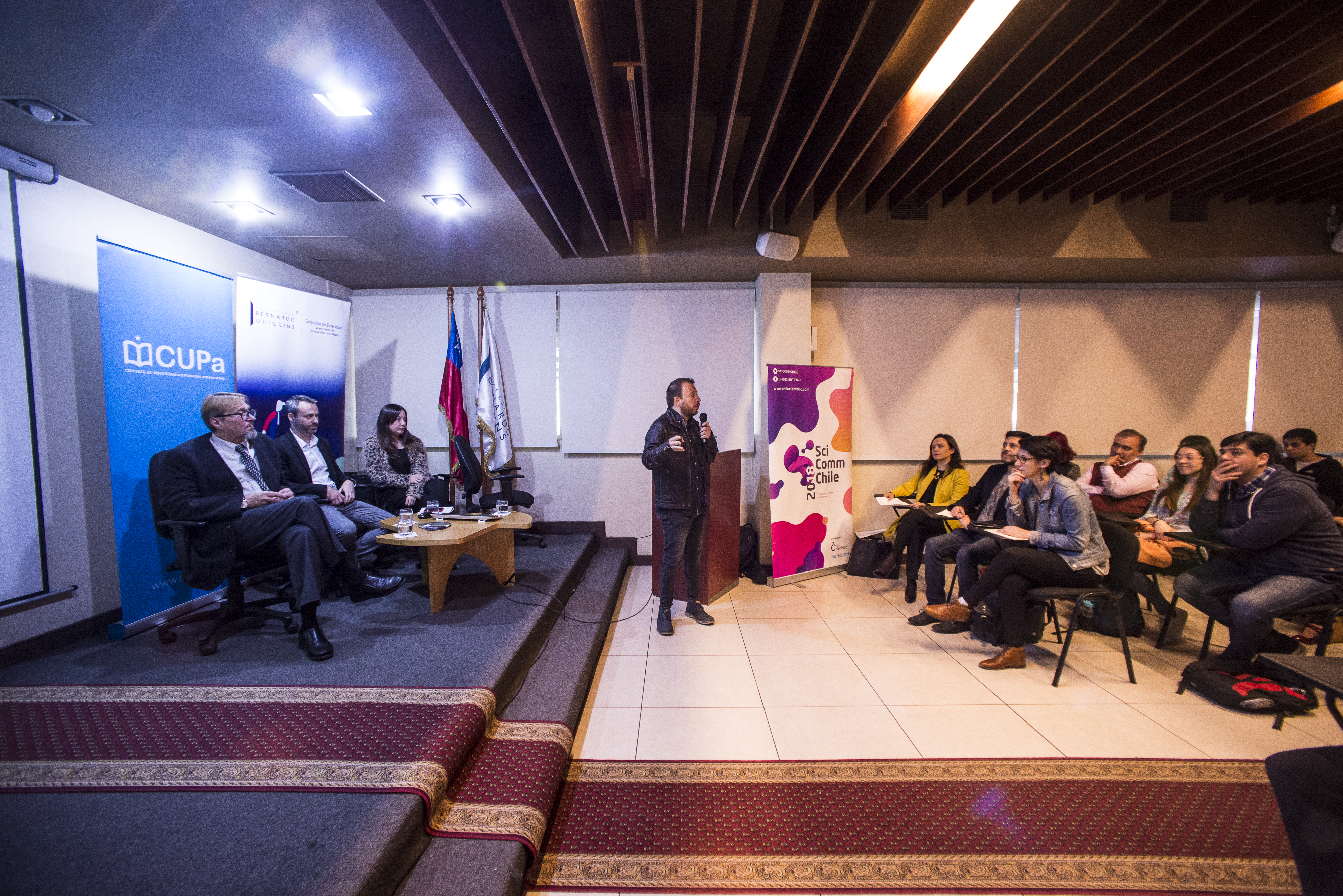 En la actividad, que contó con la presencia de más de 50 personas, participaron como expositores el divulgador científico, Gabriel León; el académico de la Universidad Bernardo O’Higgins, Michel Duquesnoy; la periodista del diario El Mercurio, Cecilia Derpich; y el investigador del Instituto de Complejidad Social de la Universidad del Desarrollo, Leo Ferres.