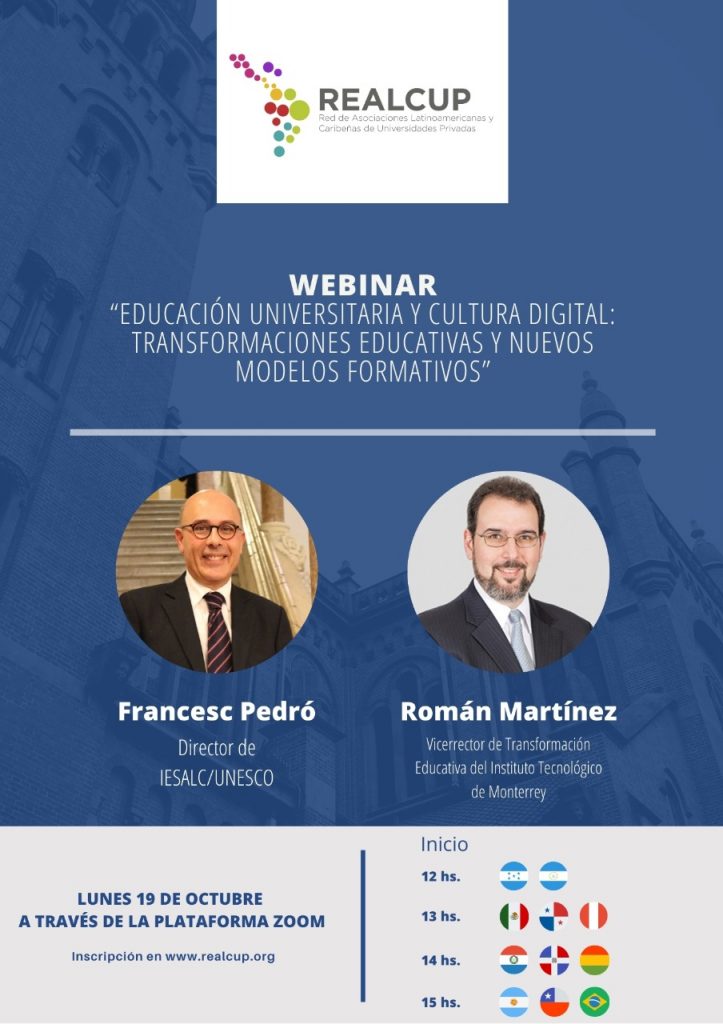 CUP Chile, miembro de la Red de Asociaciones Latinoamericanas y Caribeñas de Universidades Privadas , invita al Webinar Educación Universitaria y Cultura Digital: Transformaciones educativas y nuevos modelos formativos.