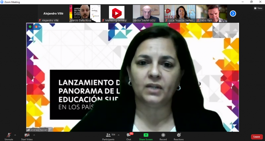 Gracias a la organización de la Red de Asociaciones Latinoamericanas y Caribeñas de Universidades Privadas (REALCUP) y con el apoyo de IESALC UNESCO, el viernes 22 de octubre, se desarrolló el lanzamiento de la primera edición del Panorama de la Educación Superior en América Latina, elaborado por SEMESP y que contó con la colaboración de todas las Asociaciones que forman parte de esta red.