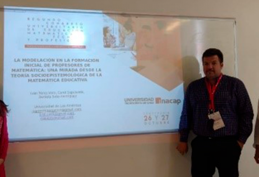 Los académicos Carol Sepúlveda, Daniela Soto e Iván Pérez presentaron el trabajo denominado «La modelación en la formación inicial de profesor de matemática: Una mirada desde la teoría Socioepistemológica de Matemática Educativa».